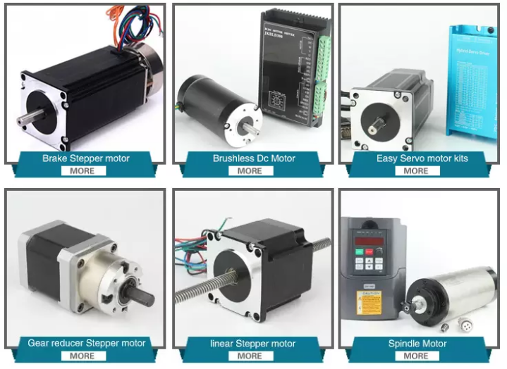 Hybrid stepper motor/brushless DC motor/stepper driver/BLDC driver/closed loop stepper motor/gear reducer stepper motor/gear reducer brushless DC motor/spindle motor and VFD/AC servo motor kit/DC motor/coupling/pully and so on.